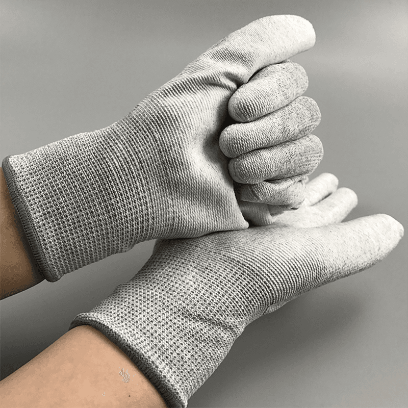 Utmärkt anti-statisk effekt: Kolfiberledande garn i handskarna kan effektivt förhindra statisk elektricitetsansamling, undvika statisk elektricitetsskada på känsliga elektroniska komponenter och säkerställa driftssäkerhet.