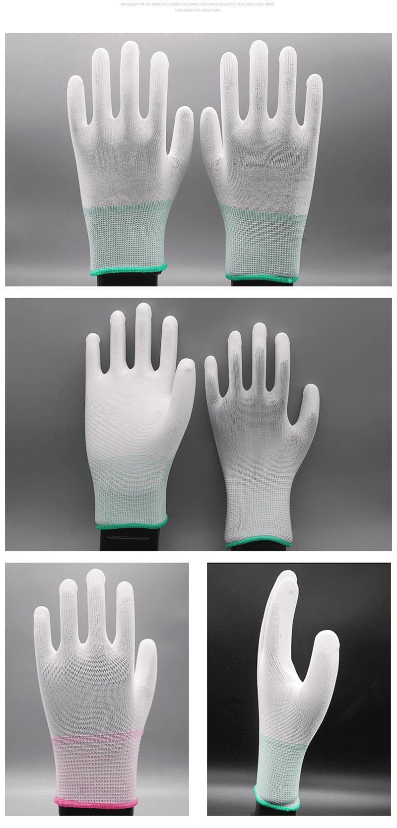 Kolfiber Nylon Antistatiska palm PU-belagda handskar används i stor utsträckning i branscher som elektronisk produktmontering, halvledartillverkning, datormontering, reparation av mobiltelefoner och smycken. I dessa jobb kan handskar inte bara förhindra statisk elektricitet från att skada kretsen, utan också ge ytterligare skydd såsom antislip och dammtät. Speciellt under datorinstallation kan handskarna ersätta traditionella antistatiska handledsband för att ge användarna mer bekvämt säkerhetsskydd.