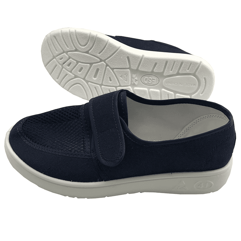 När man går i ett rent rum kan antistatiska skor effektivt undertrycka dammet som genereras av skorna och minska spridningen av damm i den rena miljön. Detta hjälper till att upprätthålla renheten i det rena rummet och förbättra produktionsprocessens renhet. Det är särskilt lämpligt för platser som farmaceutiska fabriker, livsmedelsfabriker och elektronikfabriker som kräver strikt kontroll av miljörenlighet.