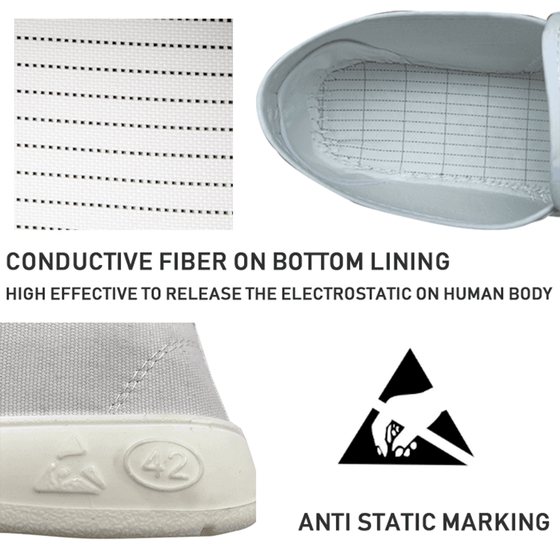 De antistatiska skorna är designade med antislipmaterial på sulorna, vilket effektivt förbättrar skorna och stabilitet på skorna. Denna design säkerställer säker promenader under olika markförhållanden och minskar risken för olyckor orsakade av halkar eller fall. Oavsett om de är våta, feta eller andra hala miljöer, kan anti-statiska skor ge tillförlitliga antislipeffekter för att säkerställa säkerheten för anställda på jobbet.