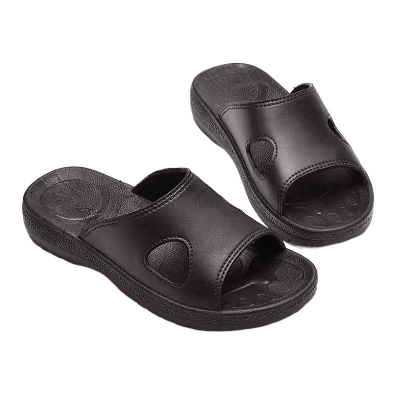 Antistatiska tofflor är huvudsakligen tillverkade av SPU-material, som har utmärkt anti-statisk prestanda. SPU (Super Polyurethane) har god konduktivitet och kan effektivt vägleda statisk laddning från människokroppen till marken för att förhindra statisk elektricitetsansamling. Denna funktion är särskilt viktig för arbetsmiljöer som är extremt känsliga för statisk el, till exempel elektroniska workshops och rena rum. Det kan effektivt skydda elektronisk utrustning och känsliga enheter och undvika skador och fel orsakade av elektrostatisk urladdning.