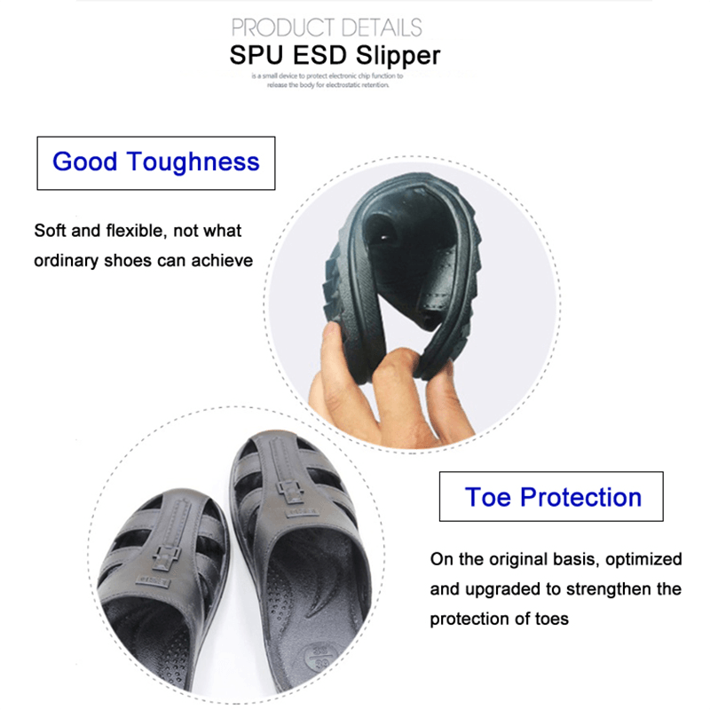 I arbetsmiljöer som tillverkning av elektronisk utrustning kan montering och underhåll, elektrostatisk urladdning (ESD) orsaka allvarliga skador på känsliga enheter såsom elektroniska komponenter och kretskort. Antistatiska ESD-tofflor är utformade för att förhindra generering och frigöring av statisk elektricitet från människokroppen, och säkert direkt statisk elektricitet till marken och därmed undvika det potentiella hotet om statisk elektricitet till elektronisk utrustning. Detta skyddande åtgärd kan effektivt skydda elektroniska komponenter med hög värde och minska skador på utrustning och produktionsavbrott orsakade av elektrostatisk urladdning.