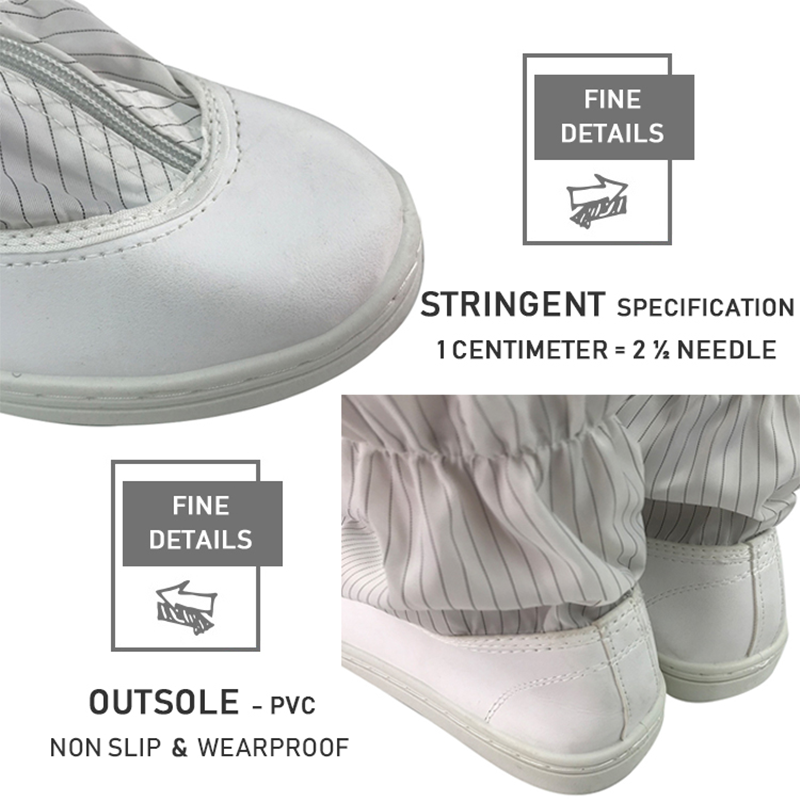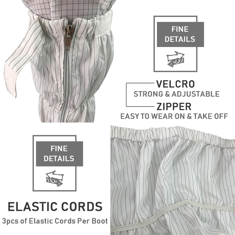 Sedan etablering 2005 har Suzhou Jujie Electron Co., Ltd. engagerad i forskning och utveckling, produktion och försäljning av renrum och antistatiska produkter. Våra antistatiska stövlar är noggrant utformade för att tillgodose behoven i moderna högteknologiska miljöer för antistatiskt skydd. Följande är de viktigaste produktfördelarna med våra renrums antistatiska stövlar: