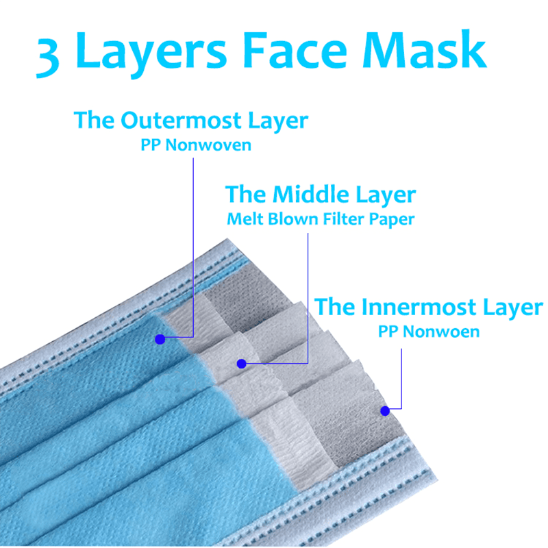 Våra icke-vävda masker är gjorda av mer än tre lager av icke-vävda tyger, och varje lager är strikt screenad och bearbetad för att säkerställa den högeffektiva filtreringsprestanda och komfort för maskerna. Det inre skiktet är mjukt och hudvänligt, mittskiktet är mycket effektivt och det yttre skiktet är vattentätt och andningsbart. Denna flerskiktsdesign kan inte bara effektivt filtrera partiklar och droppar i luften, utan också upprätthålla andningsförmåga och komfort när den bärs under lång tid.