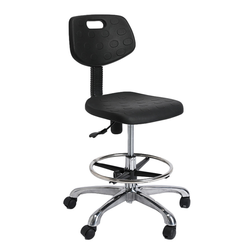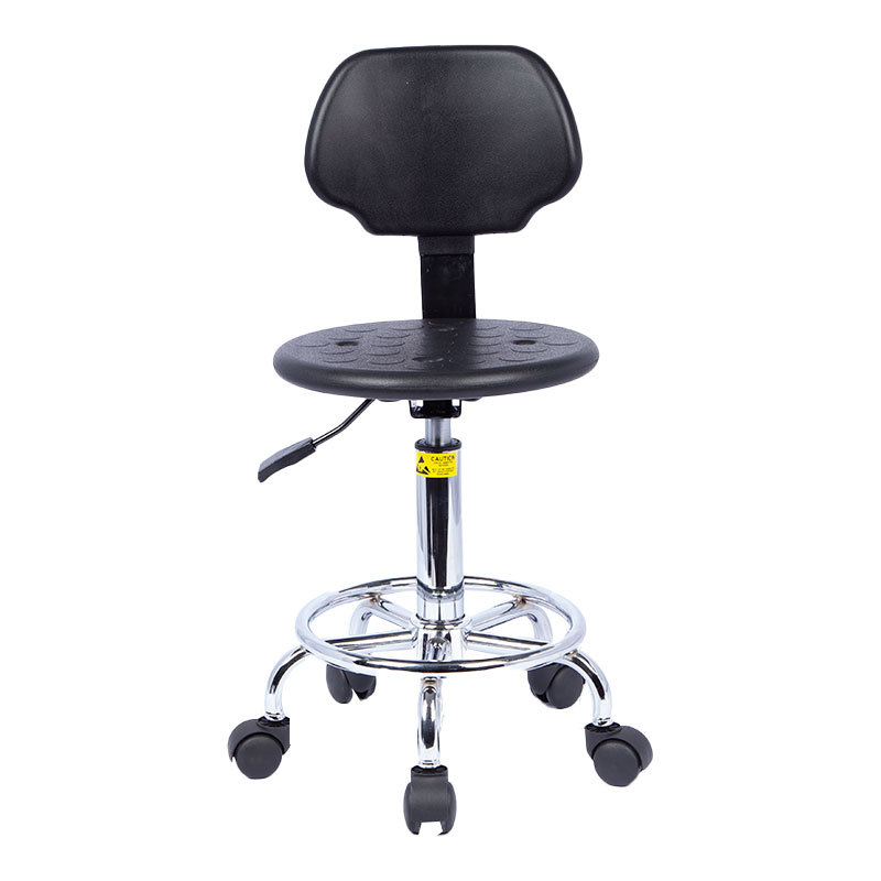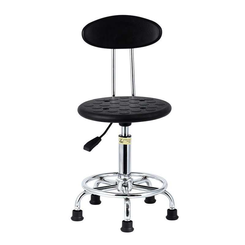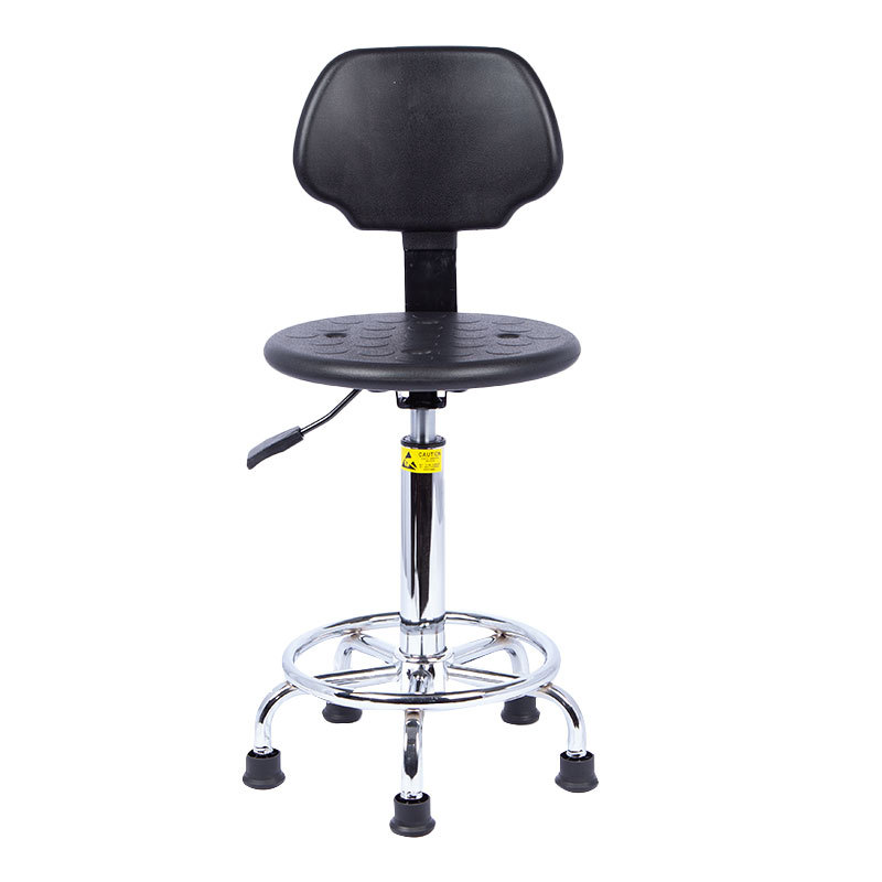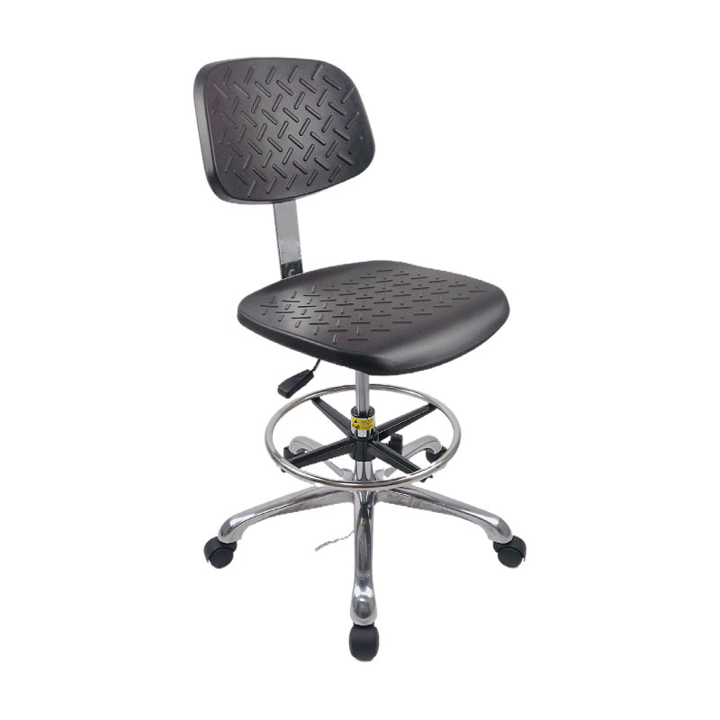 Antistatiska stolar är väsentlig utrustning i statiska känsliga områden och används allmänt inom industrier som elektroniktillverkning, halvledare, läkemedel och precisionsinstrument. Våra anti-statiska stolar är tillverkade av högkvalitativa PP-injektionsmålmaterial, i kombination med anti-statiska PU/PVC-läder och PU-skum, vilket säkerställer hög styrka, hög hårdhet och överlägsen slitmotstånd och korrosionsbeständighet. Ytmotståndsvärdet för materialet på stolens yta är mellan 10^6 och 10^11 ohm, vilket effektivt kan förhindra statisk elektricitetsansamling och frisättning.