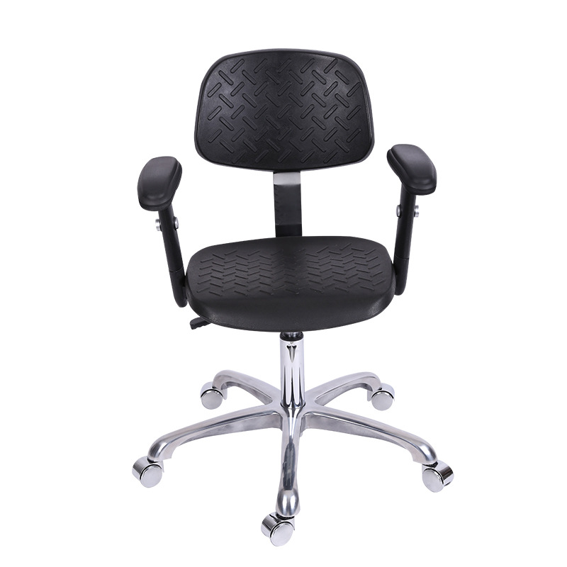 Den antistatiska stolen använder ESD-sätesdynor, ryggstöd och metalltillbehör, som effektivt kan frigöra statisk elektricitet till marken, ge tillförlitlig ESD-elektrostatisk urladdning och säkerställa säker användning i elektrostatiska känsliga områden.