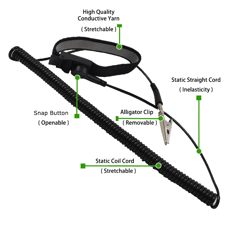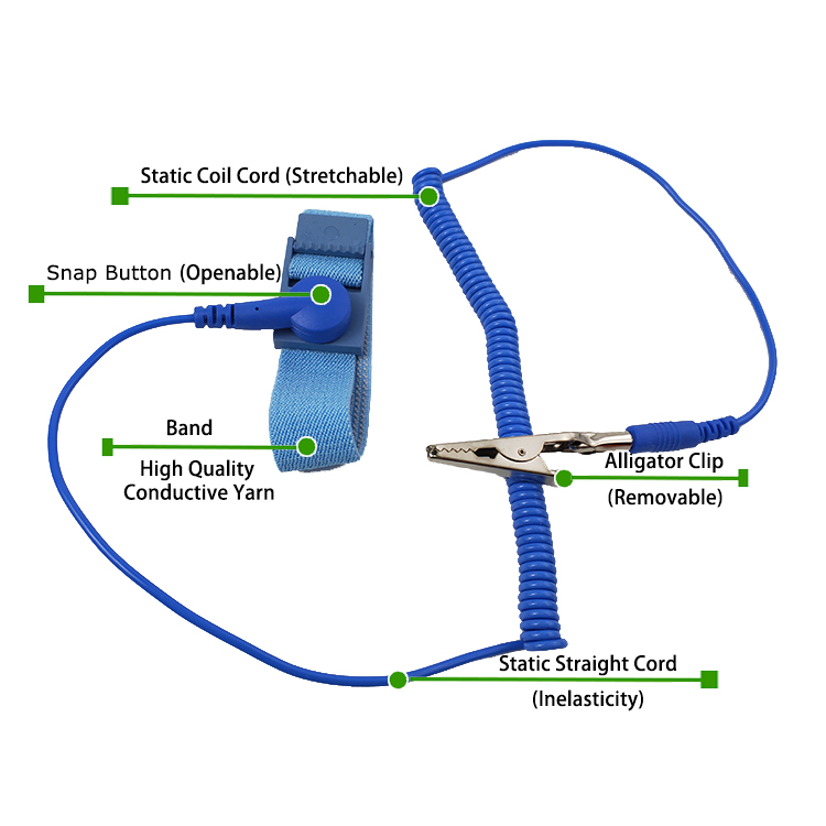 Den trådbundna antistatisk handledsrem Effektivt exporterar mänsklig statisk elektricitet till jorden genom handledsremmen och jordningstråden för att förhindra att statisk elektricitet skadar känsliga elektroniska komponenter. Denna process säkerställer säkerhet och tillförlitlighet genom stabil motstånd.