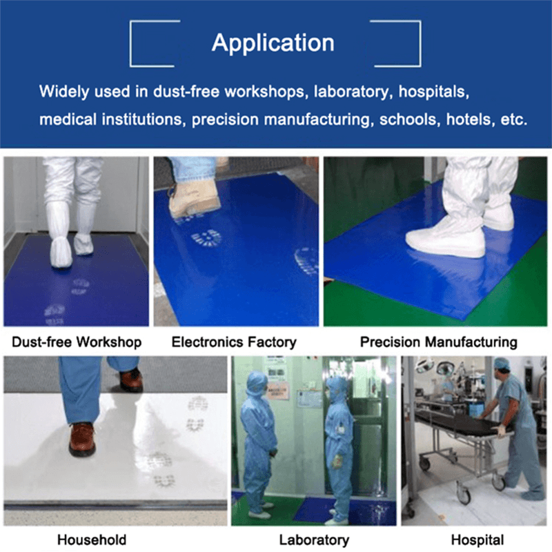Kontrollerad miljö: Oavsett om det är elektronisk tillverkning, läkemedelsindustri eller halvledarproduktion, kan klibbiga mattor effektivt minska överföringen av damm och partiklar och förbättra kvalitetskontrollen av produktionsmiljön.